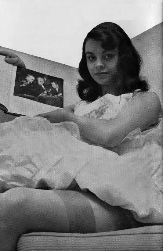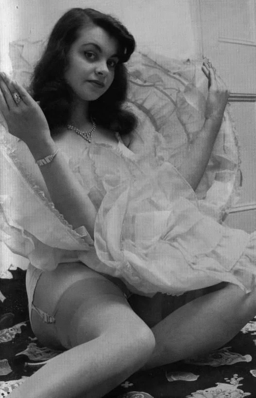 She used to work in a chemist’s shop. She went on to forge something of a career for herself but never quite made the same grade as her sister Carmen. Apart from her shoots in the ToCo mags, she is also to be seen in other mags, such as Relax Vol. 2, number 3 flashing a great pair of nyloned legs in a typical Spick and Span encounter with a stepladder.