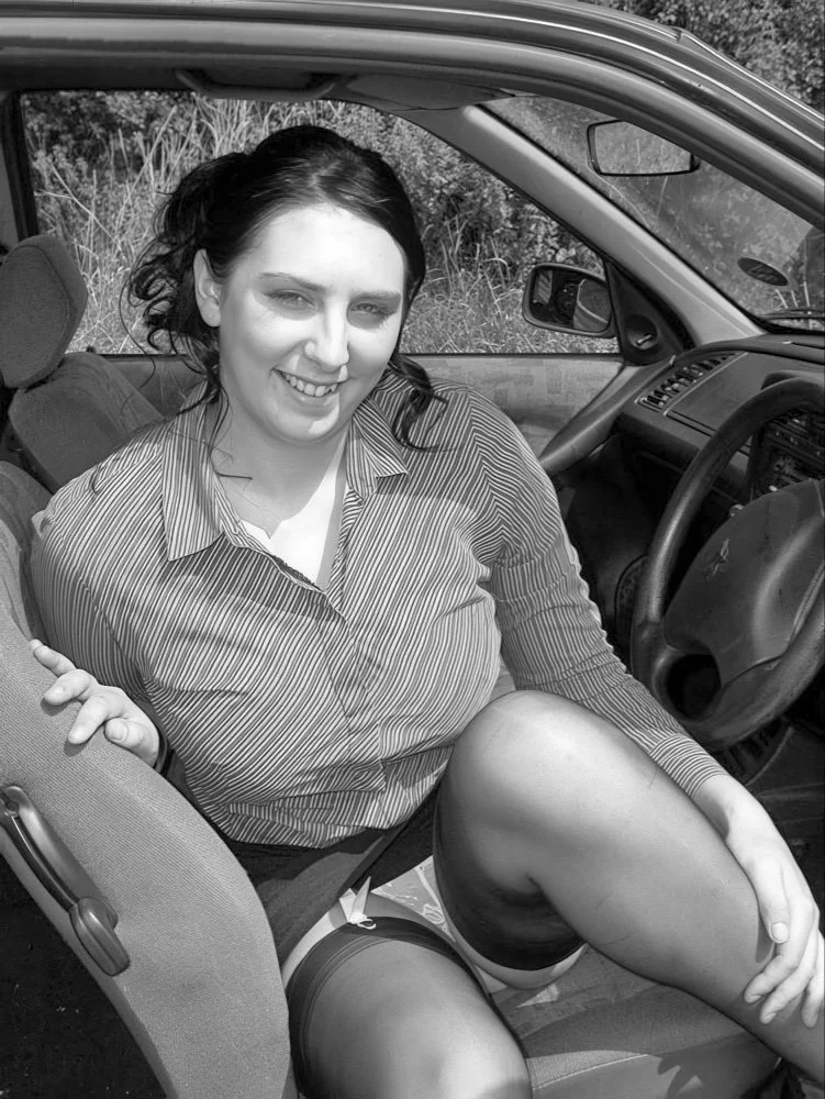 Carmen takes a break from behind the wheel to stretch her legs and cool down on a hot day.