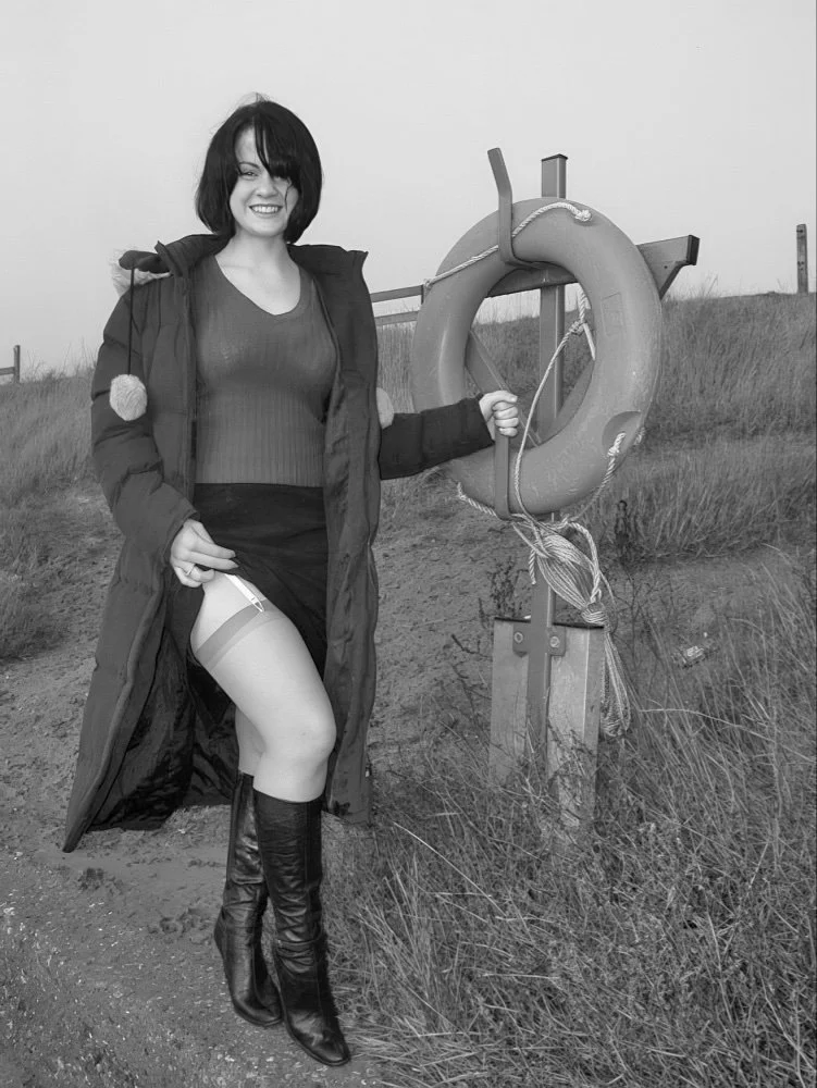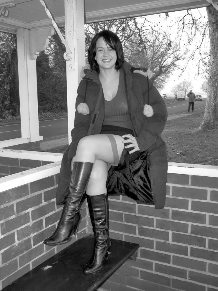 Out and about with Chrissie, flashing her stockings at every opportunity. Remember those great days with a new girlfriend? Winding you up for when you get home. Great fun.