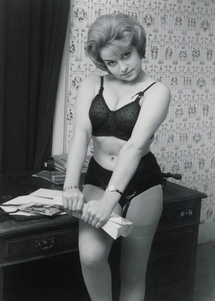 Eye candy in the office as Rene Haywood livens things up a bit in her black underwear while attempting to rip that telephone directory in half (remember those?). I am sure we have all had a go at it, but it looks fabulous on Rene.