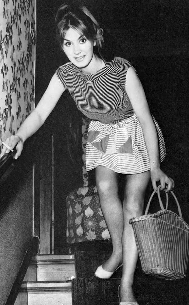 Janet, of course, went on to do a number of duo sets with Vicki Campbell, wearing some very short skirts (real miniskirts). This was all 8 years before Mary Quant - often cited as the inventor of the miniskirt, though hers were worn with tights rather than fully fashioned stockings.